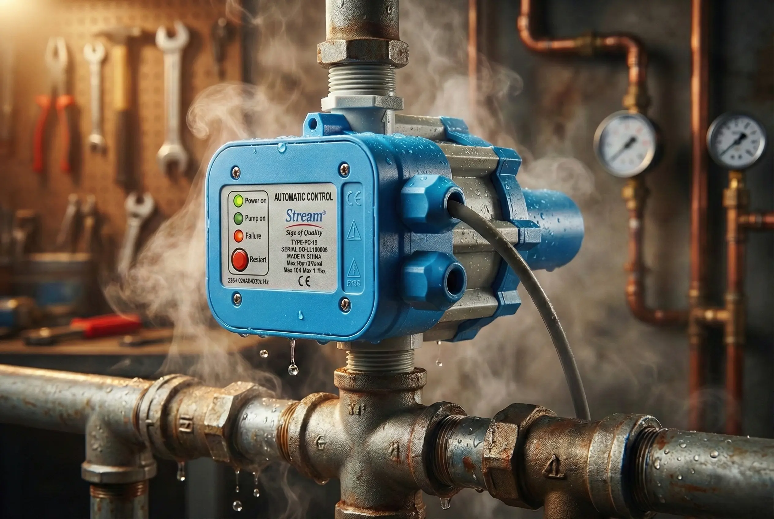 تصور کنید وسط تابستان است و آب شهری بدون اطلاع قبلی قطع میشود. شما در خانه نیستید یا خوابیدهاید. در سیستمهای قدیمی، پمپ متوجه نبودِ آب نمیشود؛ فشار پایین میآید و کلید مکانیکی به اشتباه فرمان میدهد: «تلاش کن! بیشتر کار کن تا فشار بالا برود!» پمپ بیچاره ساعتها بدون آب و با حداکثر توان کار میکند. نتیجه؟ بدنه داغ میشود، قطعات پلاستیکی ذوب میشوند و در نهایت سیمپیچ پمپ میسوزد.